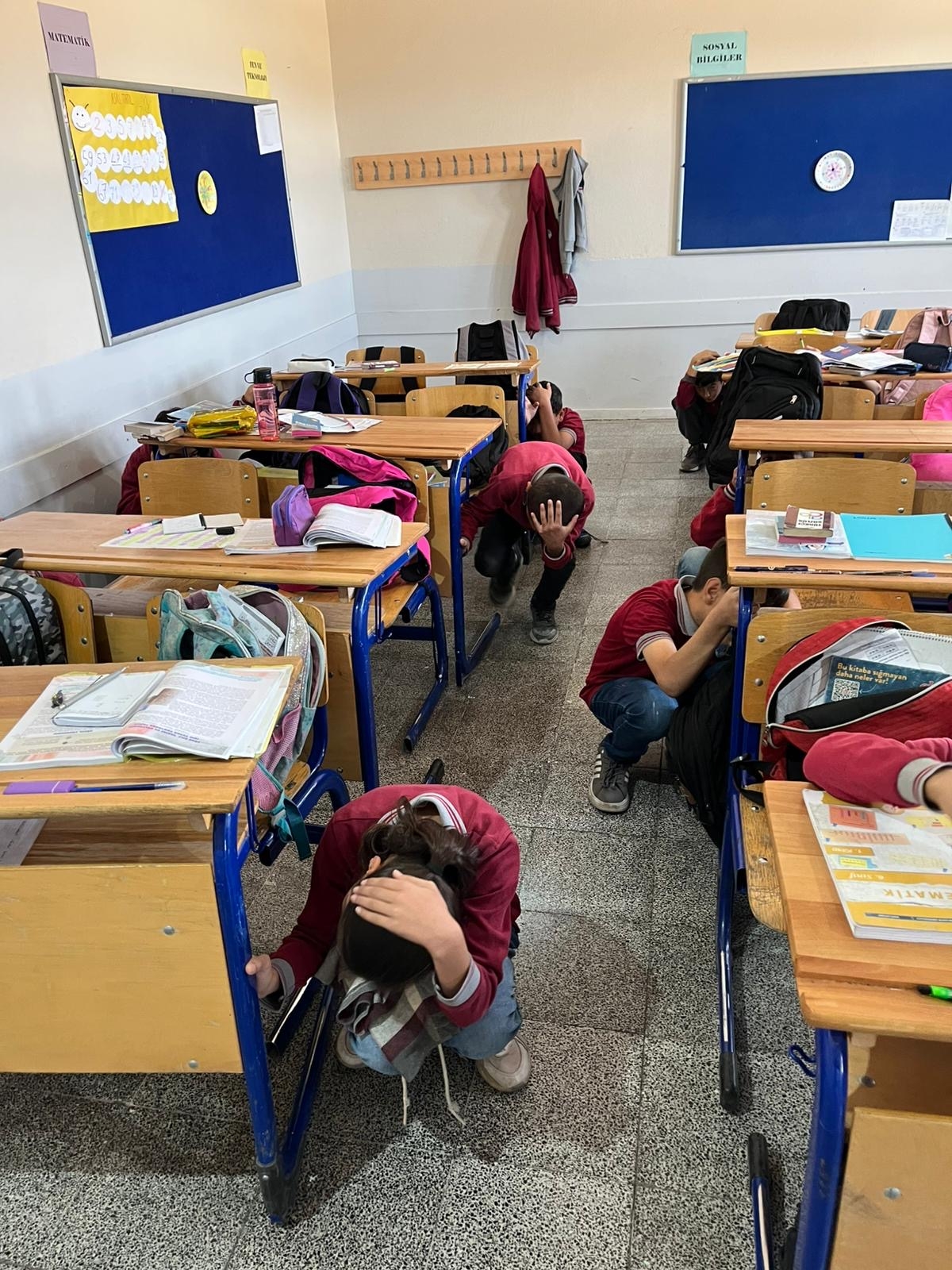Bu etkinlikte öğrencilerimiz deprem öncesi, deprem anı ve deprem sonrasında öğretmenlerimizin bilgilendirmeleri sonrasında, yaşanabilecek olası bir deprem anında nasıl hareket etmeleri gerektiği konusunda deneyim kazanarak farkındalıkları arttırıldı.